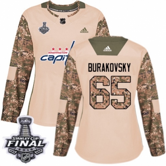 Women's Adidas Washington Capitals #65 Andre Burakovsky Authentic Camo Veterans Day Practice 2018 Stanley Cup Final Champions NHL Jersey