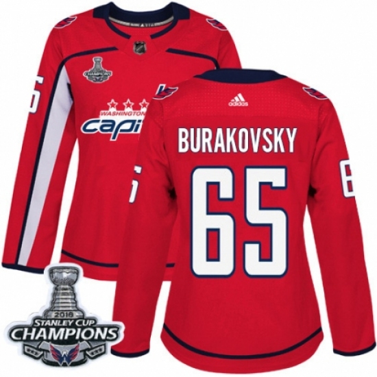 Women's Adidas Washington Capitals #65 Andre Burakovsky Authentic Red Home 2018 Stanley Cup Final Champions NHL Jersey