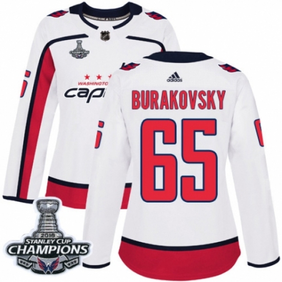 Women's Adidas Washington Capitals #65 Andre Burakovsky Authentic White Away 2018 Stanley Cup Final Champions NHL Jersey