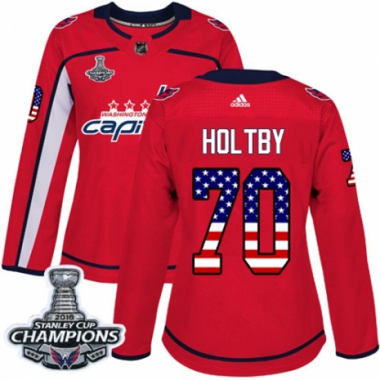 Women's Adidas Washington Capitals #70 Braden Holtby Authentic Red USA Flag Fashion 2018 Stanley Cup Final Champions NHL Jersey