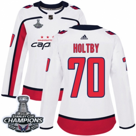 Women's Adidas Washington Capitals #70 Braden Holtby Authentic White Away 2018 Stanley Cup Final Champions NHL Jersey