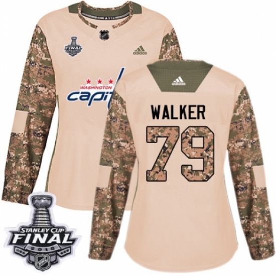Women's Adidas Washington Capitals #79 Nathan Walker Authentic Camo Veterans Day Practice 2018 Stanley Cup Final NHL Jersey