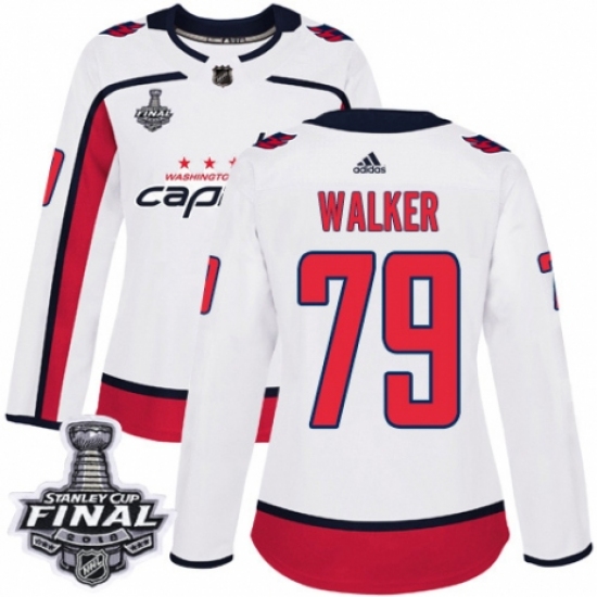 Women's Adidas Washington Capitals #79 Nathan Walker Authentic White Away 2018 Stanley Cup Final NHL Jersey