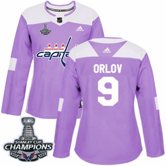 Women's Adidas Washington Capitals #9 Dmitry Orlov Authentic Purple Fights Cancer Practice 2018 Stanley Cup Final Champions NHL Jersey
