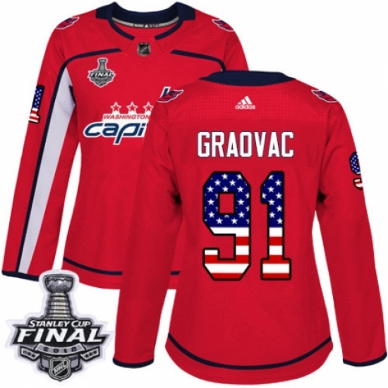 Women's Adidas Washington Capitals #91 Tyler Graovac Authentic Red USA Flag Fashion 2018 Stanley Cup Final NHL Jersey