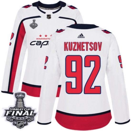 Women's Adidas Washington Capitals #92 Evgeny Kuznetsov Authentic White Away 2018 Stanley Cup Final NHL Jersey