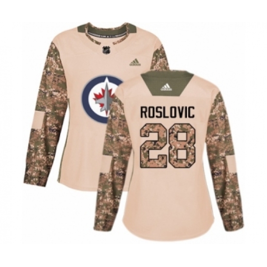 >Women's Adidas Winnipeg Jets #28 Jack Roslovic Authentic Camo Veterans Day Practice NHL Jersey