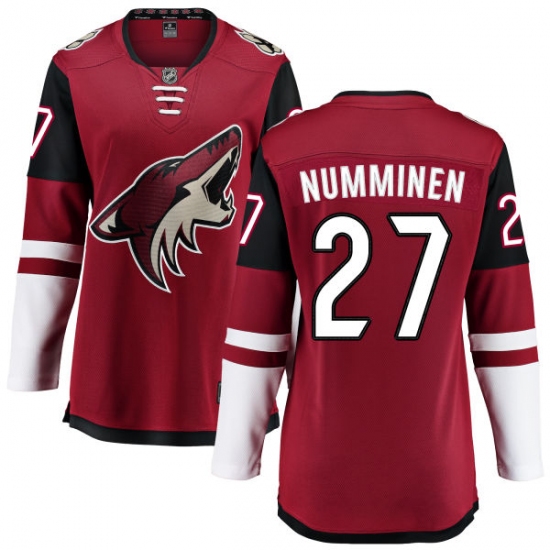 Home>NHL>Arizona Coyotes>Teppo Numminen>Women's Arizona Coyotes #27 Teppo Numminen Fanatics Branded Burgundy Red Home Breakaway NHL Jersey