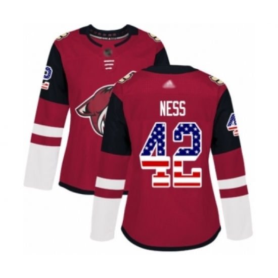 Women's Arizona Coyotes #42 Aaron Ness Authentic Red USA Flag Fashion Hockey Jersey