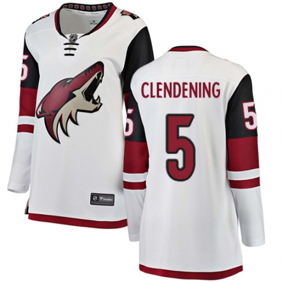 >Women's Arizona Coyotes #5 Adam Clendening Authentic White Away Fanatics Branded Breakaway NHL Jersey