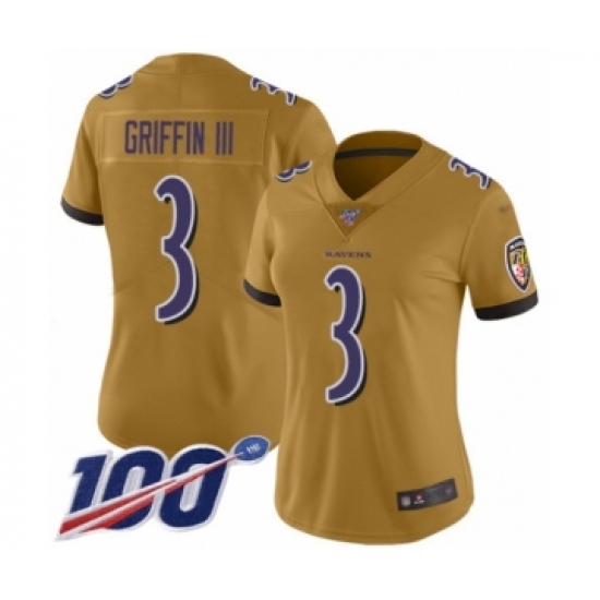 Women's Baltimore Ravens #3 Robert Griffin III Limited Gold Inverted Legend 100th Season Football Jersey
