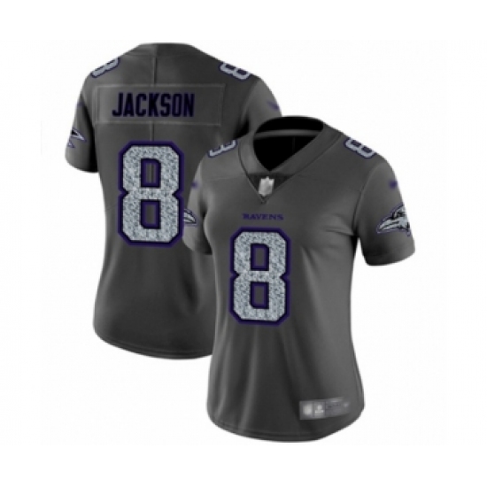 Women's Baltimore Ravens #8 Lamar Jackson Limited Gray Static Fashion Football Jersey