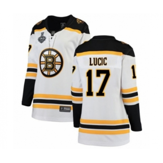 Women's Boston Bruins #17 Milan Lucic Authentic White Away Fanatics Branded Breakaway 2019 Stanley Cup Final Bound Hockey Jersey