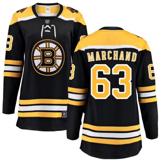 Women's Boston Bruins #63 Brad Marchand Authentic Black Home Fanatics Branded Breakaway NHL Jersey