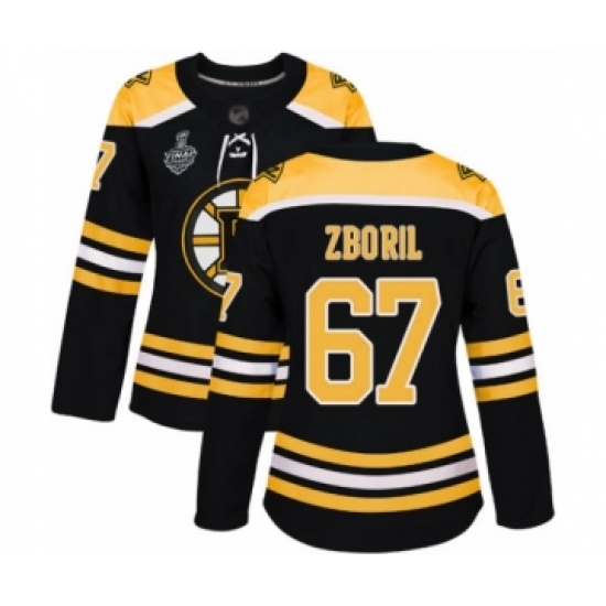 >Women's Boston Bruins #67 Jakub Zboril Authentic Black Home 2019 Stanley Cup Final Bound Hockey Jersey