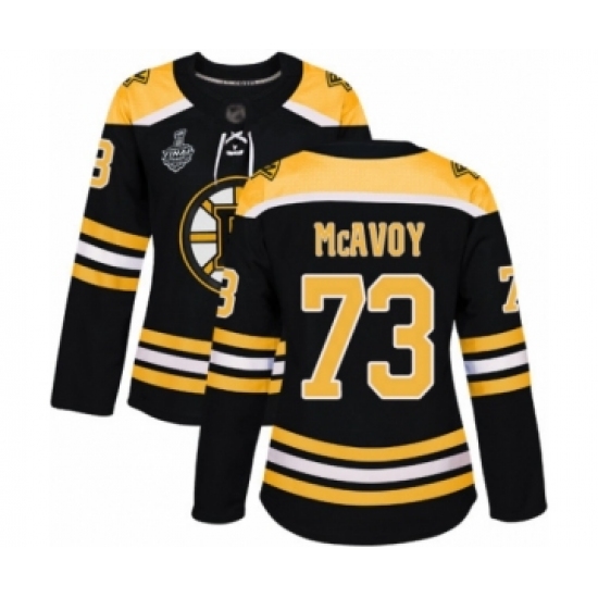 >Women's Boston Bruins #73 Charlie McAvoy Authentic Black Home 2019 Stanley Cup Final Bound Hockey Jersey