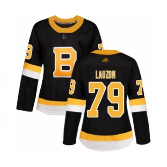 >Women's Boston Bruins #79 Jeremy Lauzon Authentic Black Alternate Hockey Jersey