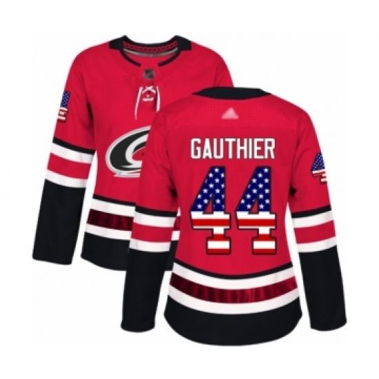 Women's Carolina Hurricanes #44 Julien Gauthier Authentic Red USA Flag Fashion Hockey Jersey