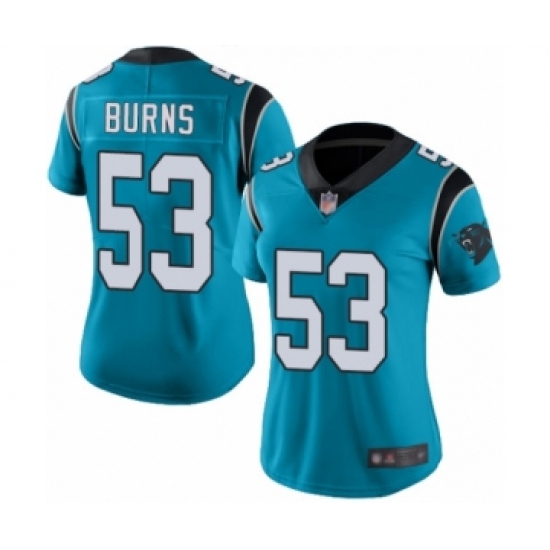 >Women's Carolina Panthers #53 Brian Burns Limited Blue Rush Vapor Untouchable Football Jersey