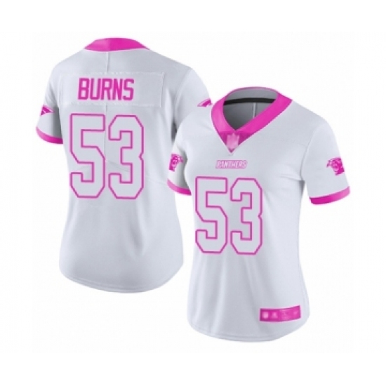 >Women's Carolina Panthers #53 Brian Burns Limited White Pink Rush Fashion Football Jersey