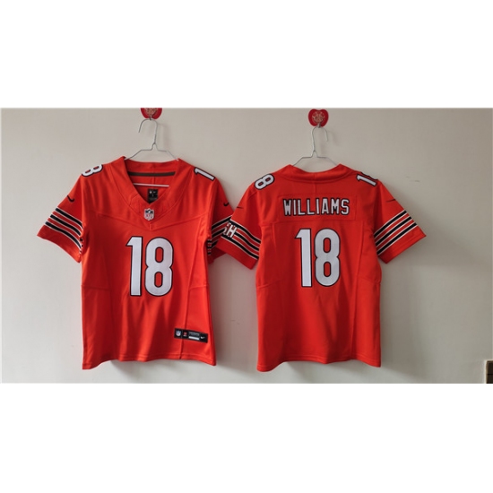 >Women's Chicago Bears #18 Caleb Williams Orange 2024 Draft F.U.S.E. Vapor Football Stitched Jersey