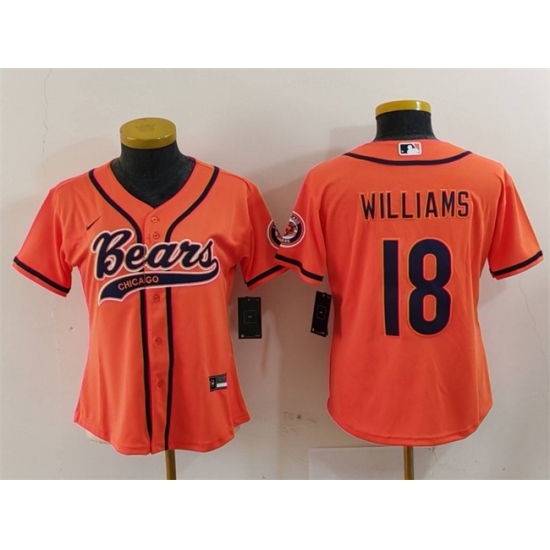 >Women's Chicago Bears #18 Caleb Williams Orange With Cool Base Stitched Baseball Jersey(Run Small)