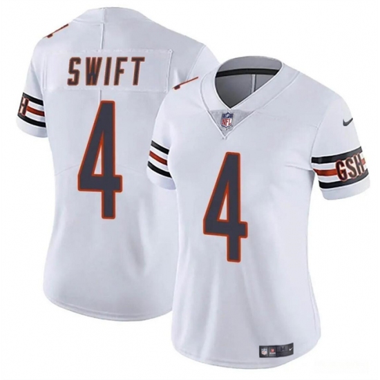 Women's Chicago Bears #4 D’Andre Swift White 2024 Vapor Football Stitched Jersey(Run Small)
