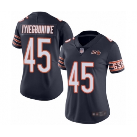 >Women's Chicago Bears #45 Joel Iyiegbuniwe Navy Blue Team Color 100th Season Limited Football Jersey
