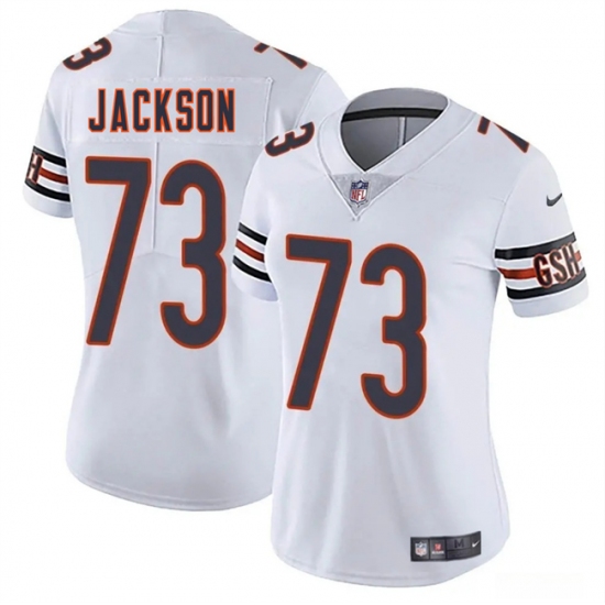 >Women's Chicago Bears #73 Jonah Jackson White 2025 Vapor Stitched Jersey(Run Small)