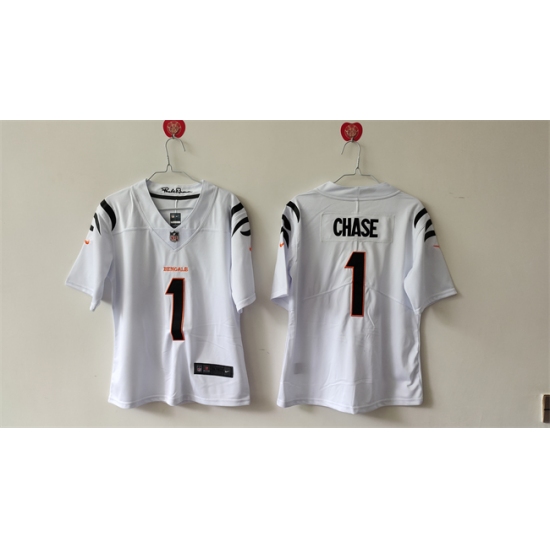 >Women's Cincinnati Bengals #1 Ja'Marr Chase White Vapor Football Stitched Jersey(Run Small)