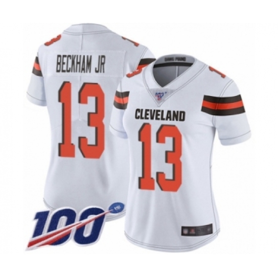 Women's Cleveland Browns #13 Odell Beckham Jr. White 100th Season Vapor Untouchable Limited Player Football Jersey