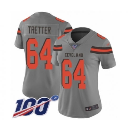 Women's Cleveland Browns #64 JC Tretter Limited Gray Inverted Legend 100th Season Football Jersey