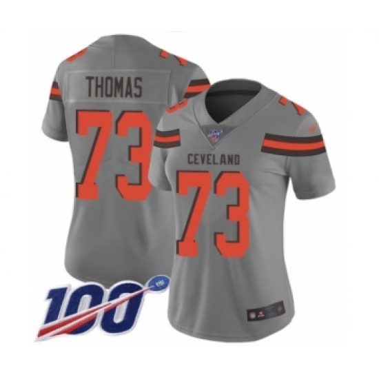 >Women's Cleveland Browns #73 Joe Thomas Limited Gray Inverted Legend 100th Season Football Jersey