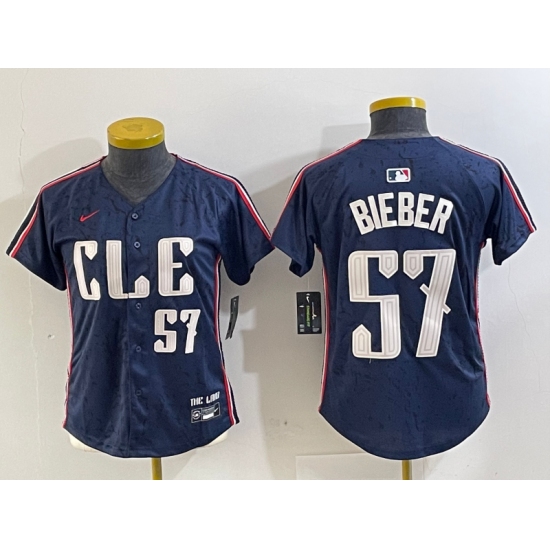 >Women's Cleveland Guardians #57 Shane Bieber Number Navy 2024 City Connect Limited Stitched Jersey