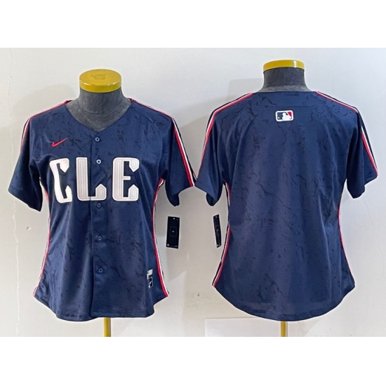 >Women's Cleveland Guardians Blank Navy 2024 City Connect Limited Stitched Jersey