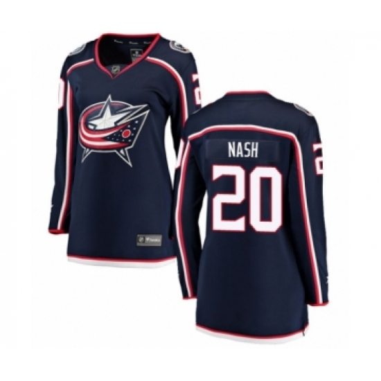>Women's Columbus Blue Jackets #20 Riley Nash Authentic Navy Blue Home Fanatics Branded Breakaway NHL Jersey