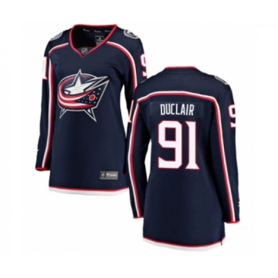 >Women's Columbus Blue Jackets #91 Anthony Duclair Authentic Navy Blue Home Fanatics Branded Breakaway NHL Jersey