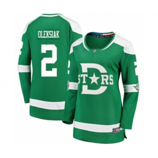>Women's Dallas Stars #2 Jamie Oleksiak Authentic Green 2020 Winter Classic Fanatics Branded Breakaway Hockey Jersey