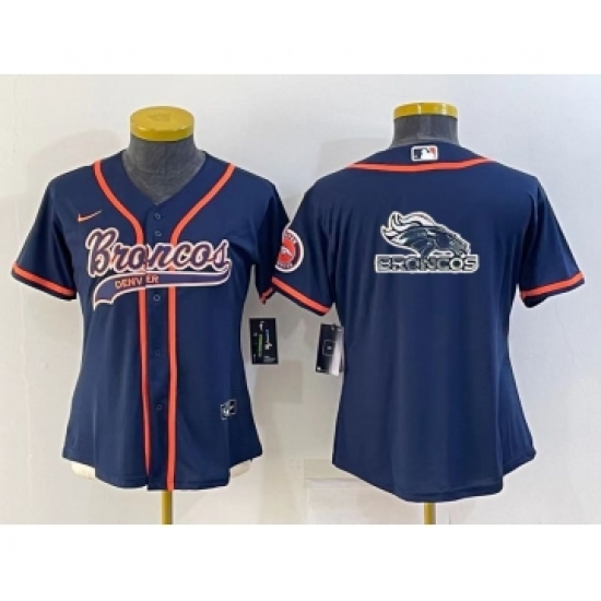 Women's Denver Broncos Navy Team Big Logo With Patch Cool Base Stitched Baseball Jersey