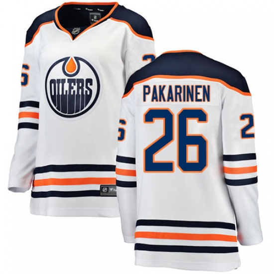Home>NHL>Edmonton Oilers>Iiro Pakarinen>Women's Edmonton Oilers #26 Iiro Pakarinen Authentic White Away Fanatics Branded Breakaway NHL Jersey