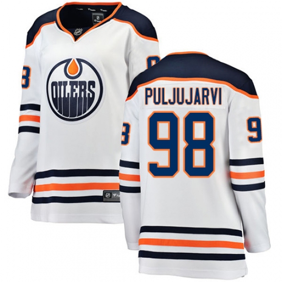 Women's Edmonton Oilers #98 Jesse Puljujarvi Authentic White Away Fanatics Branded Breakaway NHL Jersey