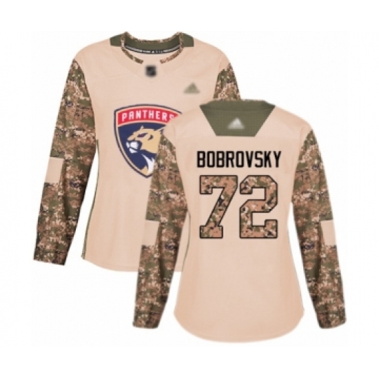 >Women's Florida Panthers #72 Sergei Bobrovsky Authentic Camo Veterans Day Practice Hockey Jersey