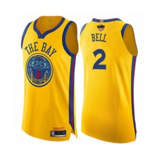 >Women's Golden State Warriors #2 Jordan Bell Swingman Gold 2019 Basketball Finals Bound Basketball Jersey - City Edition