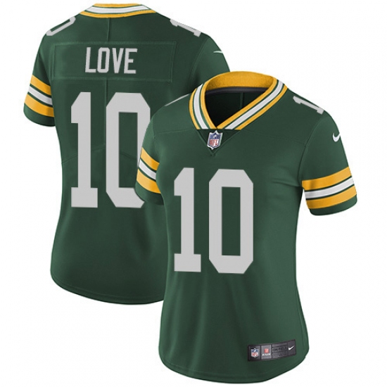 Women's Green Bay Packers #10 Jordan Love Green Team Color Stitched NFL Vapor Untouchable Limited Jersey