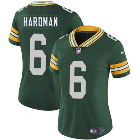>Women's Green Bay Packers #6 Mecole Hardman Green 2025 Vapor Untouchable Limited Football Stitched Jersey(Run Small)