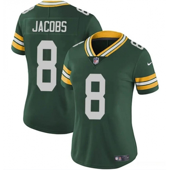 >Women's Green Bay Packers #8 Josh Jacobs Green Vapor Untouchable Limited Stitched Jersey(Run Small)