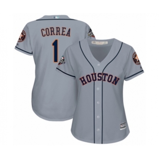 Women's Houston Astros #1 Carlos Correa Authentic Grey Road Cool Base 2019 World Series Bound Baseball Jersey