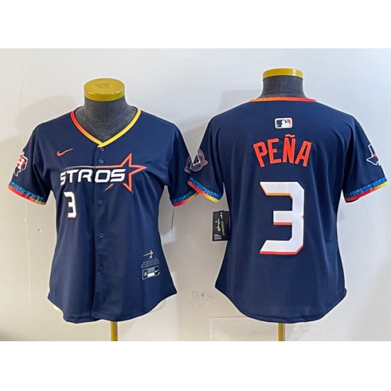 >Women's Houston Astros #3 Jeremy Pena Navy 2025 City Connect With Texas Limited Stitched Baseball Jersey(Run Small)