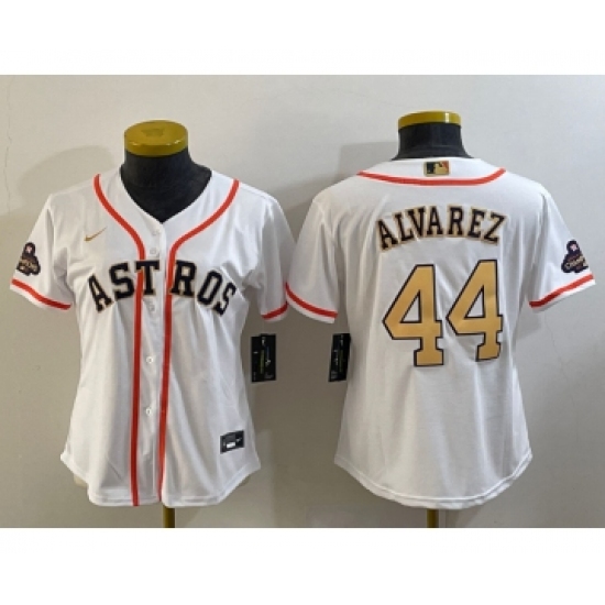 Women's Houston Astros #44 Yordan Alvarez 2023 White Gold World Serise Champions Cool Base Stitched Jersey