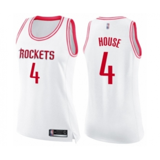 >Women's Houston Rockets #4 Danuel House Swingman White Pink Fashion Basketball Jersey